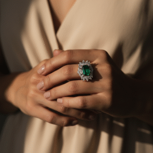 Green Emerald Diamond Ring